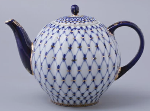 Чайник доливной рис. Кобальтовая сетка изготовлен на Императорском фарфоровом заводе из твердого фарфора с применением только ручной росписи. Автор рисунка - Яцкевич А.А. Объем изделия - 2000 мл.